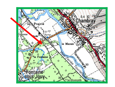 RENDEZ-VOUS : parking du Chemin Rial, situé près du passage à niveau à droite en parcourant la RD 63 de Fontaine à Chambray - cf carte