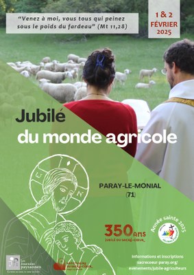 En 2025, le sanctuaire de Paray-le-Monial fête le Jubilé des 350 ans des apparitions de Jésus à sainte Marguerite-Marie. Ce Jubilé coïncide avec l’Année Sainte de 2025, convoquée et ouverte à Rome par le pape François. En communion avec l’appel du pape, nous invitons tous les acteurs du monde agricole à venir à Paray-le-Monial les 1er et 2 février 2025, afin de se reposer sur le Cœur de Jésus et y puiser des signes d'Espérance.