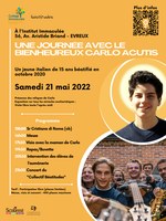 Des reliques de Carlo Acutis, jeune italien de 15 ans béatifié en octobre 2020 viennent à Évreux. Temps fort pour les jeunes avec l'exposition de tous les Miracles Eucharistiques, visio avec la maman de Carlo, et concert du "Collectif Béatitudes"
