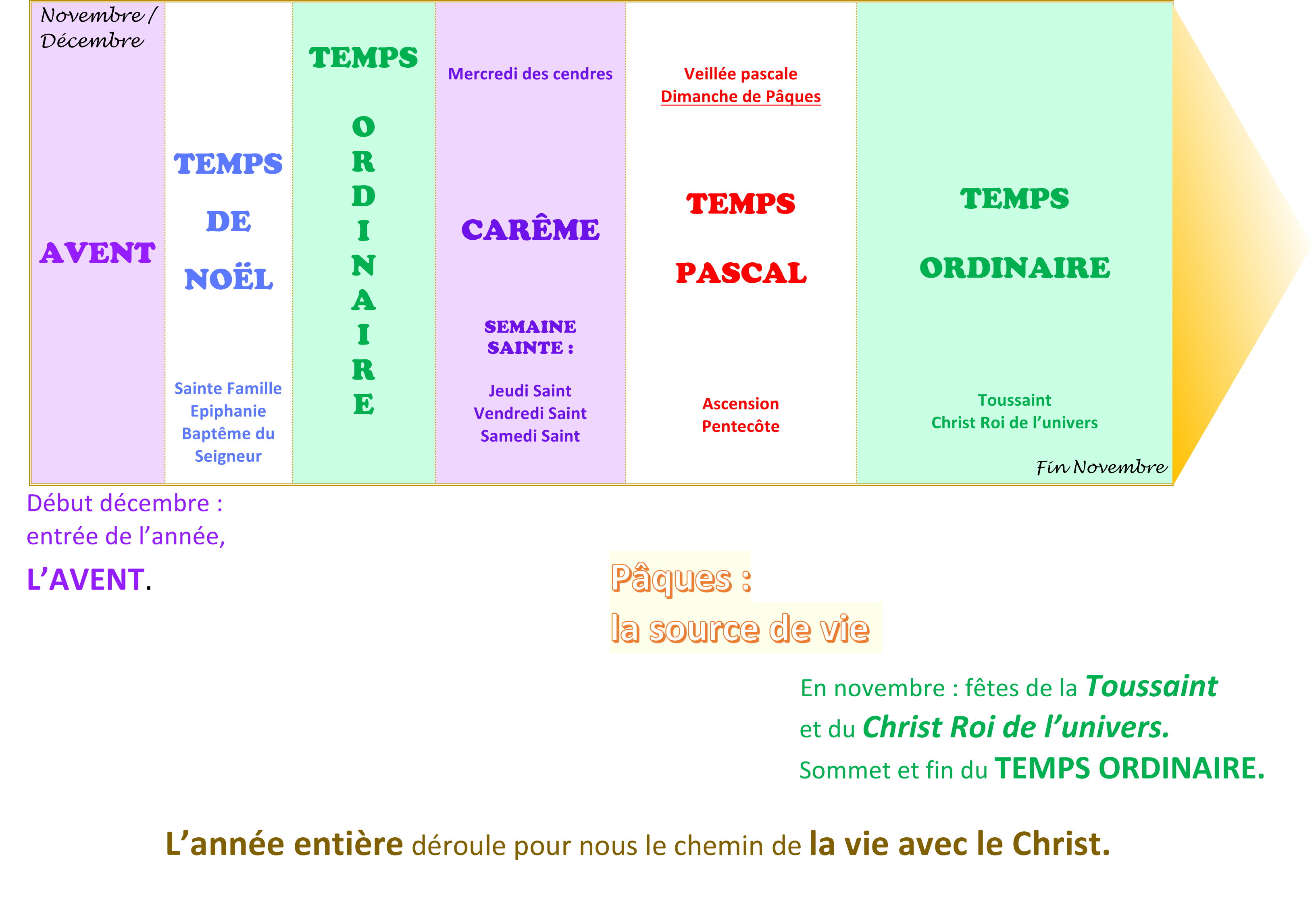 L’année liturgique ne coïncide pas exactement avec l’année civile, ni avec l’année scolaire.